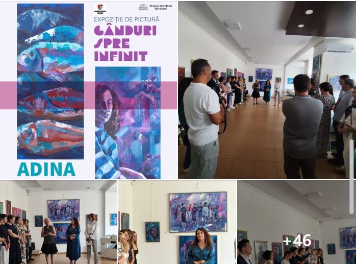 La Botoșani, începutul lunii septembrie a însemnat nu doar întoarcerea la ritmul obișnuit al toamnei, ci și un moment de grație pentru iubitorii de artă. Luni, 1 septembrie 2025, în spațiul Colecției de Artă a Muzeului Județean Botoșani, a avut loc vernisajul expoziției „Gânduri spre infinit”, semnată de artista plastică Adina Strugariu, profesor titular de specialitate la Liceul de Artă „Ștefan Luchian”.