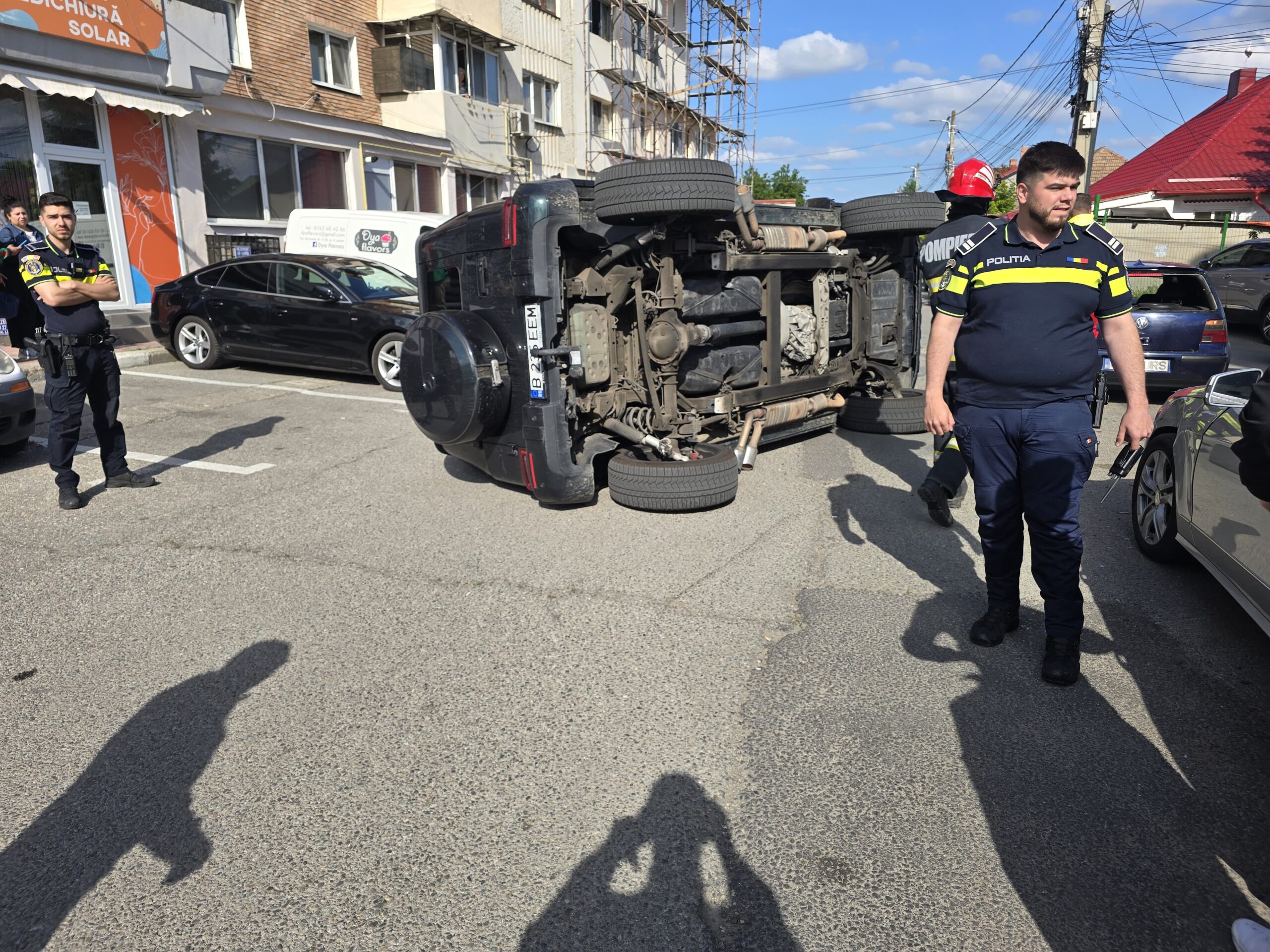 „La data de 12 mai a.c., ora 16.45, pe strada Trandafirilor, din municipiul Giurgiu, a avut loc un eveniment rutier, soldat cu pagube materiale. Din primele cercetări a reieșit faptul că, un bărbat, de 51 de ani, din municipiul Giurgiu, în timp ce conducea un autoturism, ar fi întrat în coliziune cu alte două autoturisme, staționate pe partea carosabilă”, au trasmis polițiștii.