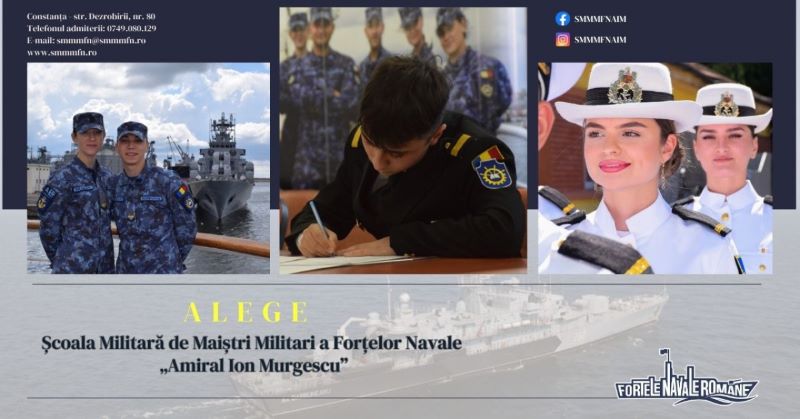 Școala Militară de Maiștri Militari a Forțelor Navale „Amiral Ion Murgescu” din Constanța a anunțat organizarea unui concurs pentru ocuparea a 172 de locuri pentru anul școlar 2025-2026. Locurile sunt distribuite astfel: 129 pentru Ministerul Apărării Naționale, 39 pentru Ministerul Afacerilor Interne și 4 pentru Serviciul de Informații Externe. Înscrierile pentru Ministerul Apărării Naționale se fac online, pe platforma www.recrutaremapn.ro, în perioada 3 martie – 6 iunie. Oferta educațională pentru MApN cuprinde specializări precum Artilerie navală, Echipamente de navigație și hidrografie, Arme sub apă și altele. La finalul celor doi ani de studii, absolvenții vor fi repartizați în unități militare din Forțele Navale Române. Pentru mai multe detalii, cei interesați pot accesa site-ul școlii militare www.smmmfn.ro sau birourile de informare-recrutare din cadrul Centrelor Militare Zonale.