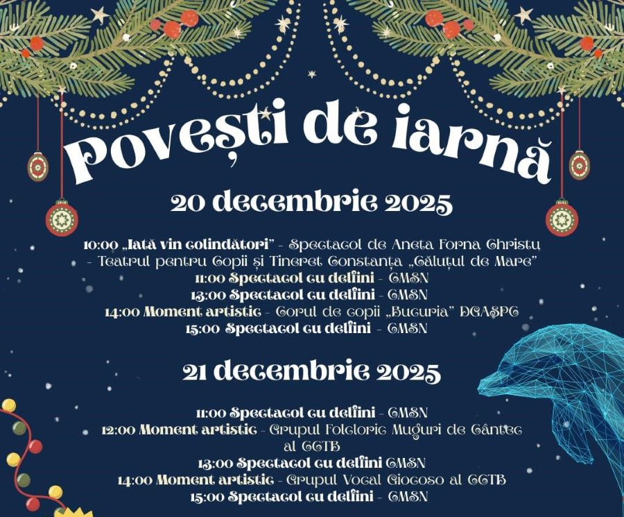 Sâmbătă, evenimentele încep cu un spectacol dedicat colindelor, susținut de Aneta Forna Christu, urmați de spectacole cu delfini realizate de CMSN. De asemenea, Corul de copii „Bucuria” va aduce un moment artistic special. Duminica continuă cu un program similar, incluzând atât spectacole cu delfini, cât și prezentări ale grupurilor folclorice, precum „Muguri de Cântec” și „Giocoso”.