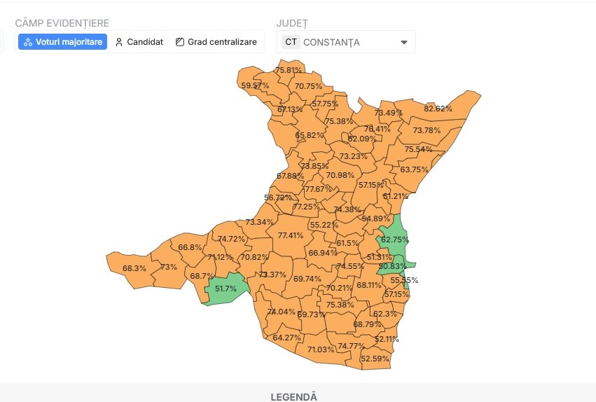 În cadrul alegerilor recente, Nicușor Dan a obținut 50,47% din voturile județului, însă majoritatea localităților l-au favorizat pe George Simion. Acesta din urmă a reușit să câștige în orașe importante precum Valu lui Traian (52,24%), Ovidiu (51,21%) și Medgidia (55,22%). În municipiul Constanța, Dan a avut un avans semnificativ, cu 62,75%. Deși a câștigat în câteva localități, printre care Dobromir și Eforie, cele mai multe primării conduse de PNL nu au susținut cu succes candidatura sa. De notat este lipsa unei poziționări clare din partea PSD, care a așteptat rezultatul pentru a decide o eventuală alianță. Rezultatele sugerează o disconectare între realizările administrației liberale și preferințele alegătorilor din județ.