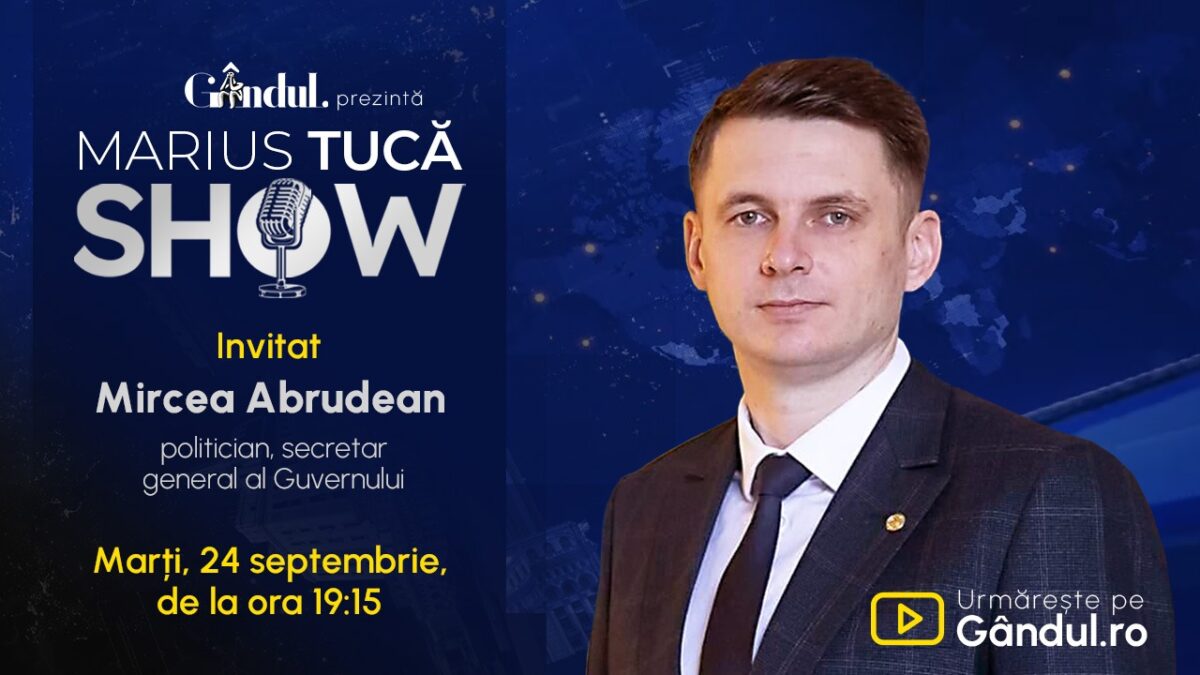 Marius Tucă Show începe marți, 24 septembrie, de la ora 19.15, live pe Gândul. Invitat: Mircea Abrudean